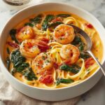 This Best Creamy Shrimp Tuscan Fettuccine recipe features tender shrimp in a rich, garlicky cream sauce with sun-dried tomatoes and fresh spinach, served over perfectly cooked fettuccine. Ready in 30 minutes, this comforting Italian-inspired dish balances savory flavors with a hint of lemon for freshness, making it an ideal weeknight dinner.