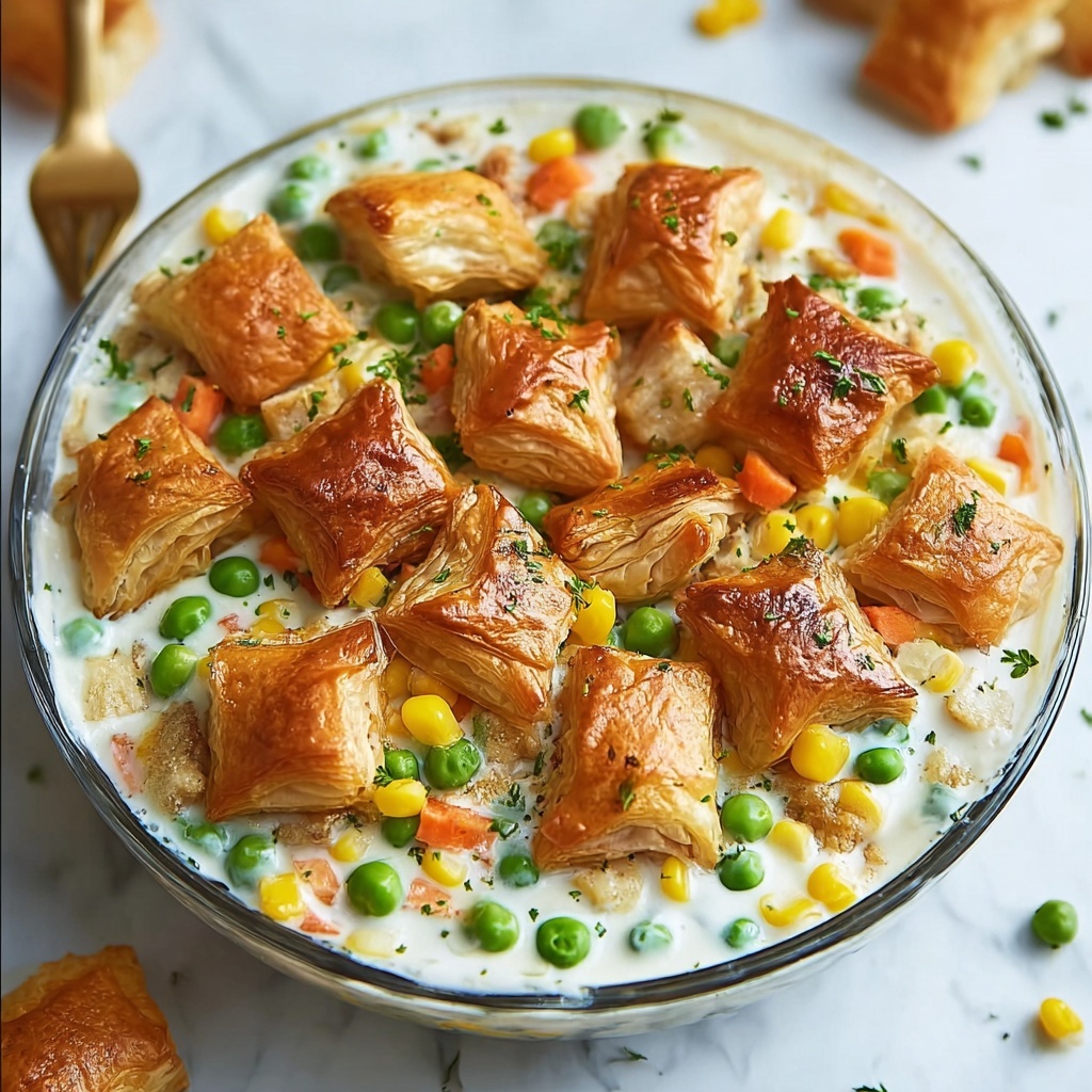 For a fun twist, serve individual portions in small ramekins covered with puff pastry, baking them separately for perfectly portioned personal pot pies. Alternatively, take advantage of colorful ceramic dishes to elevate presentation for a cozy dinner party featuring the Creamy Chicken Pot Pie Bake with Puff Pastry Recipe.