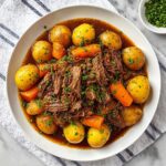 This Crock Pot Pot Roast recipe delivers a tender, flavorful one-pot meal perfect for a comforting dinner. With a slow-cooked chuck roast combined with savory seasonings, vegetables, and herbs, it transforms simple ingredients into a melt-in-your-mouth delight. The low and slow cooking method ensures the beef becomes fall-apart tender, while the blend of spices and fresh herbs adds rich depth to the dish.