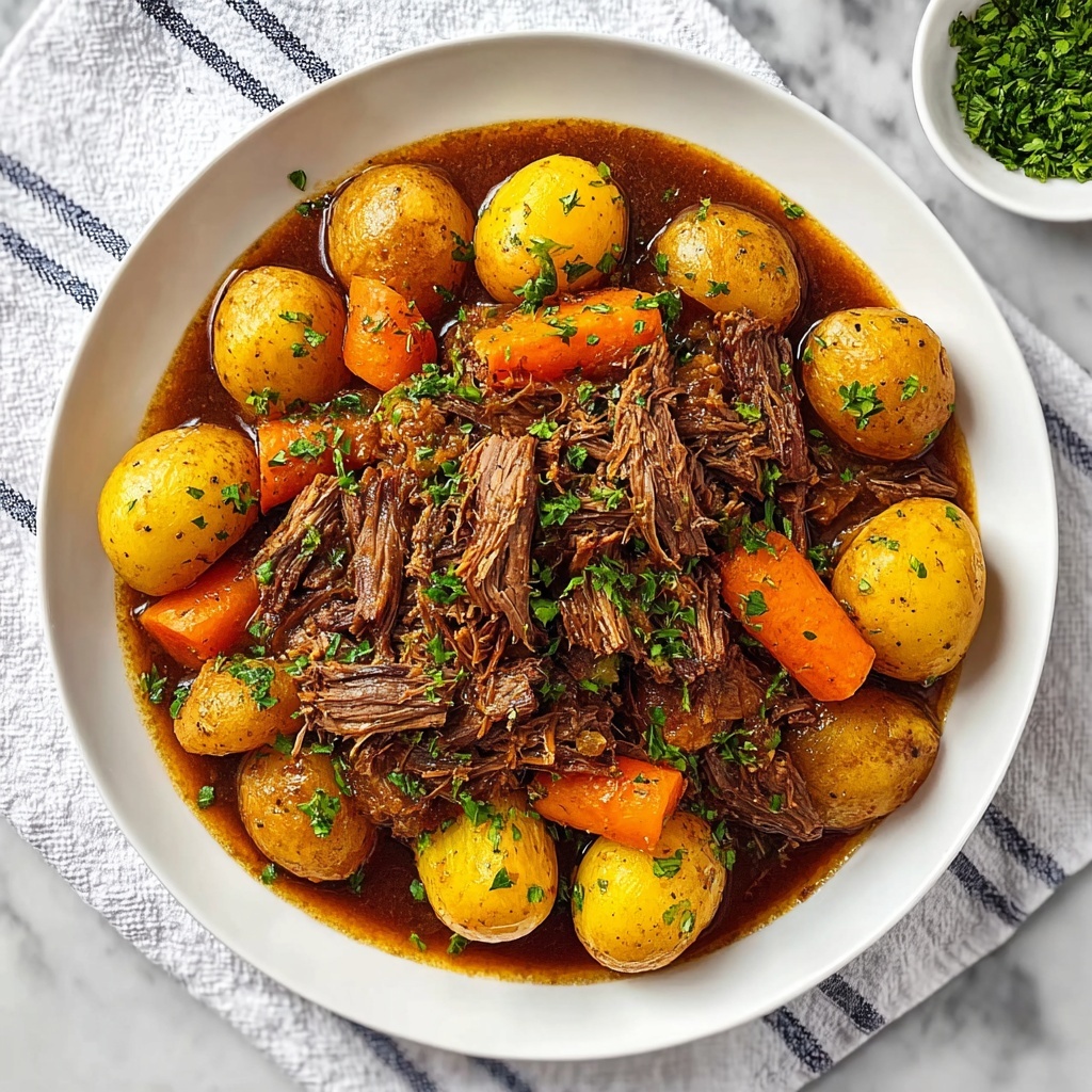 This pot roast pairs beautifully with a variety of sides. Creamy mashed potatoes or buttered egg noodles are classic choices that soak up the gravy perfectly. If you want something green, steamed broccoli or a crisp garden salad adds freshness to the plate and balances the hearty flavors.