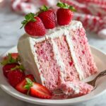 This Double Strawberry Cake is a delightful and moist dessert that combines the rich flavors of strawberry-flavored gelatin and fresh strawberry purée in both the cake and the frosting. Perfect for strawberry lovers, this cake features a tender white cake base enhanced with strawberry notes, topped with a creamy strawberry cream cheese frosting and garnished with fresh strawberries for an extra burst of freshness.