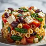 This Greek Pasta Salad is a vibrant and refreshing dish combining al dente pasta with fresh vegetables, tangy Kalamata olives, and crumbly feta cheese. Tossed in a zesty dressing of olive oil, red wine vinegar, lemon juice, and herbs, this salad is perfect as a light lunch or a colorful side for any meal. Ready in just 25 minutes, it delivers Mediterranean flavors with minimal effort.