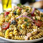 Begin by cooking your rotini or penne pasta according to the package instructions until it’s perfectly al dente. This means the pasta will be tender but still have a bit of firmness to the bite, which helps maintain great texture in the salad. Once drained, rinse the pasta under cold water to stop the cooking process and cool it down completely. This step is crucial so the pasta doesn’t soak up too much dressing and become mushy.
