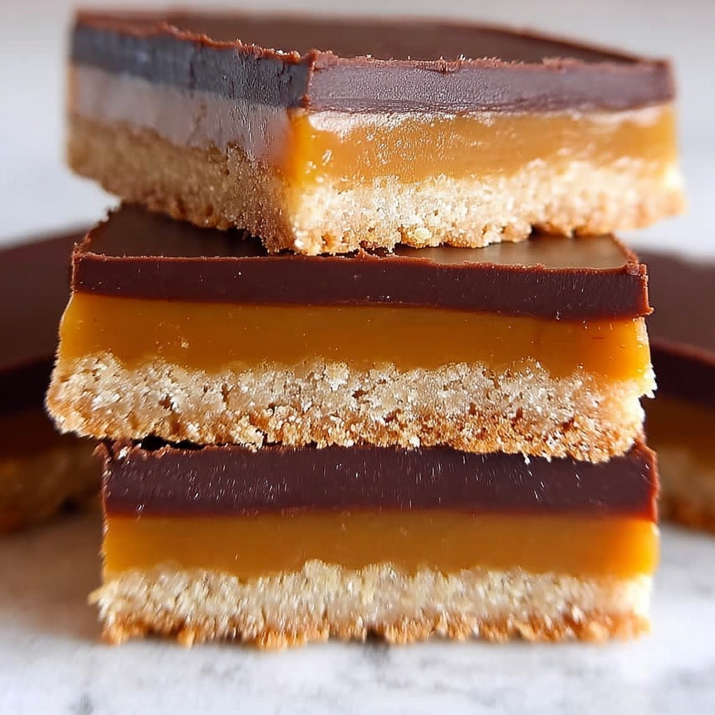 Start by preheating your oven to 350 degrees Fahrenheit and lining an 8×8-inch pan with parchment paper to prevent sticking. In a mixing bowl, combine the almond flour, coconut flour, maple syrup, melted coconut oil, vanilla extract, and a pinch of salt. Mix these until you form a soft, pliable dough that you can press evenly into your pan. This base will be the sturdy, flavorful platform for your bars and adding that slight crispness you crave in a Twix-like crust. Bake this for about 10 to 12 minutes until the edges turn a gentle golden hue, then allow the crust to cool fully—this sets the stage perfectly for the layers to come.