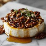 - Assemble the Dish: Once the brie is baked, pour the warm maple-pecan mixture evenly over the top of the cheese.