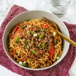 This one-pot beef ramen noodles recipe is a quick, flavorful dinner that combines ground beef, fresh vegetables, and instant ramen in a savory broth. Perfect for a hearty weeknight meal, it features tender noodles and crisp-tender veggies all cooked together for convenience and delicious taste.
