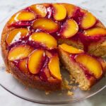 To take your Peach Plum Upside Down Cake Recipe to the next level, consider garnishing with a light dusting of powdered sugar or a handful of toasted almond slivers for some crunch. A dollop of whipped cream or a scoop of vanilla ice cream adds a creamy contrast to the caramelized fruit’s natural sweetness.