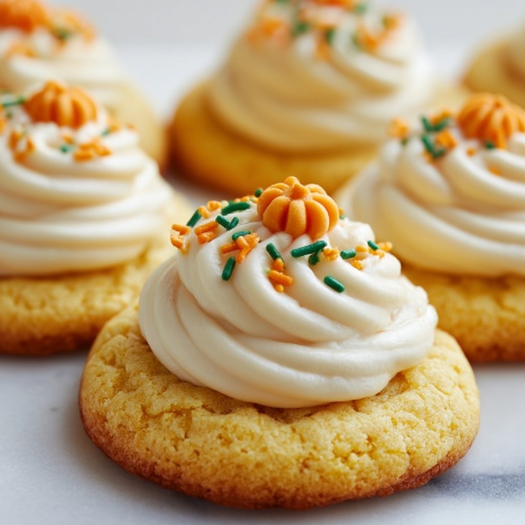 9. Frost and Decorate: Generously frost the cooled cookies using a knife or piping bag. Optionally, garnish with pumpkin-colored sprinkles or decorative piping for a festive look.