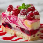 - Add Raspberry Sorbet Layer: Spread the softened raspberry sorbet or raspberry ice cream evenly over the swirled vanilla layer. Smooth the top layer with a spatula. If using, gently press the fresh raspberries into this sorbet layer for extra texture and flavor.