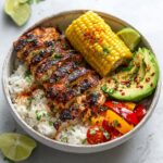 These Smoky Street Corn Chicken Bowls combine tender, spice-rubbed grilled chicken with a creamy, zesty street corn topping served over a bed of fragrant jasmine or basmati rice. With fresh avocado, juicy cherry tomatoes, and a cilantro-lime finish, this dish offers a delicious balance of smoky, tangy, and fresh flavors perfect for a quick and satisfying weeknight meal.